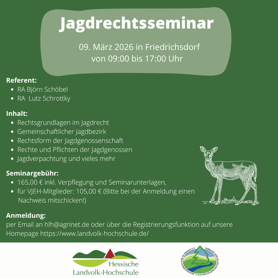 Anmeldung: Jagdrechtsseminar am 09.03.2026 - Hessische Landvolk-Hochschule