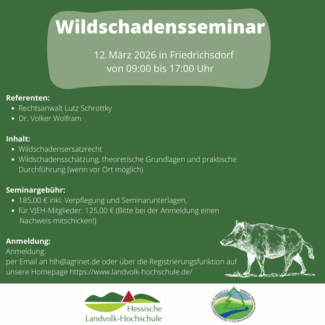 Dieses Seminar ist eine Kooperationsveranstaltung mit dem Verband der Jagdgenossenschaften und Eigenjagdbesitzer in Hessen e. V.