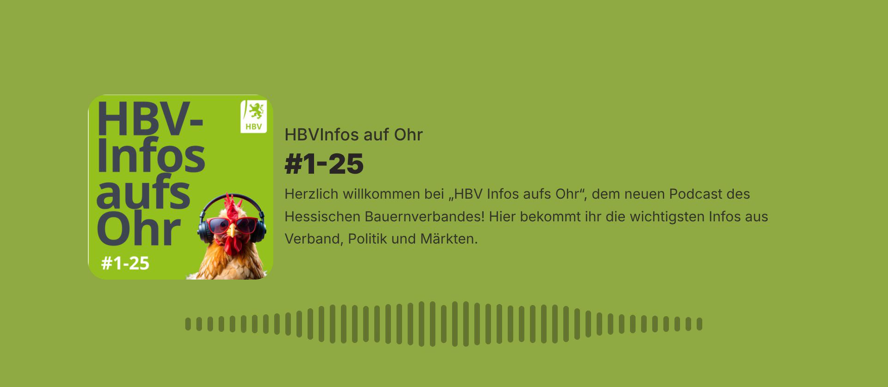 Ab nächster Woche sind die Podcasts exklusiv für Mitglieder des Hessischen Bauernverbandes verfügbar. Ein weiterer Vorteil Ihrer Mitgliedschaft! Sie finden den Podcast danach über den myHBV-Mitgliederbereich. Hier erfahr Sie, wie Sie sich registrieren und anmelden.